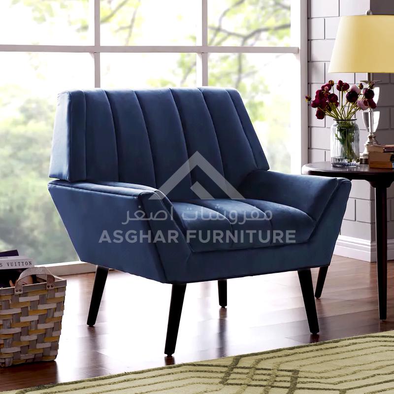 Relax elegantly in this New York Luxury Armchair by Asghar Furniture. A thick foam cushion, sinuous springs, and flared arms keep you fully comfortable throughout the afternoon while you lounge on it the navy-blue velvet upholstery and dark wood legs exemplify timeless sophistication on the New York Luxury Arm Chair.