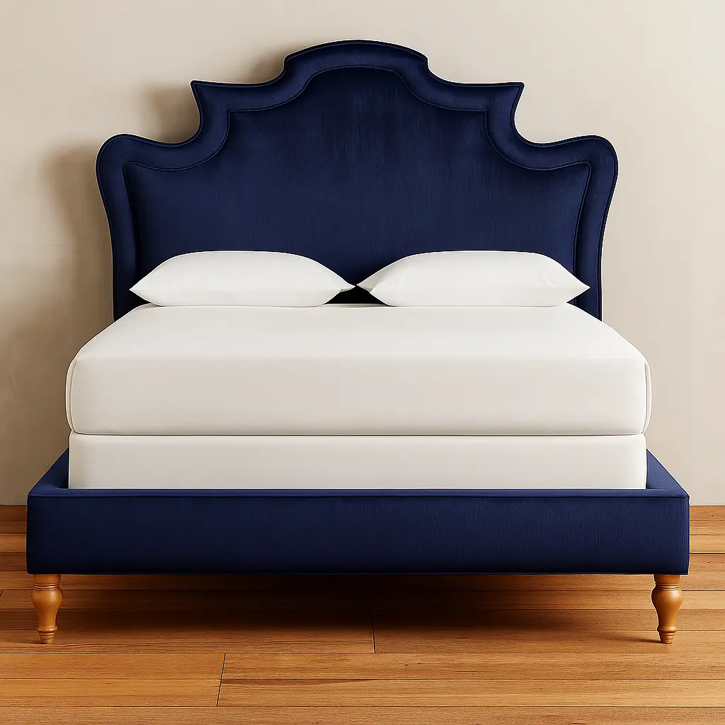 Arch Curved Bed: A dramatic, exquisitely upholstered frame features a tall, sculptural headboard that turns this handcrafted piece into a delight for the eyes.
