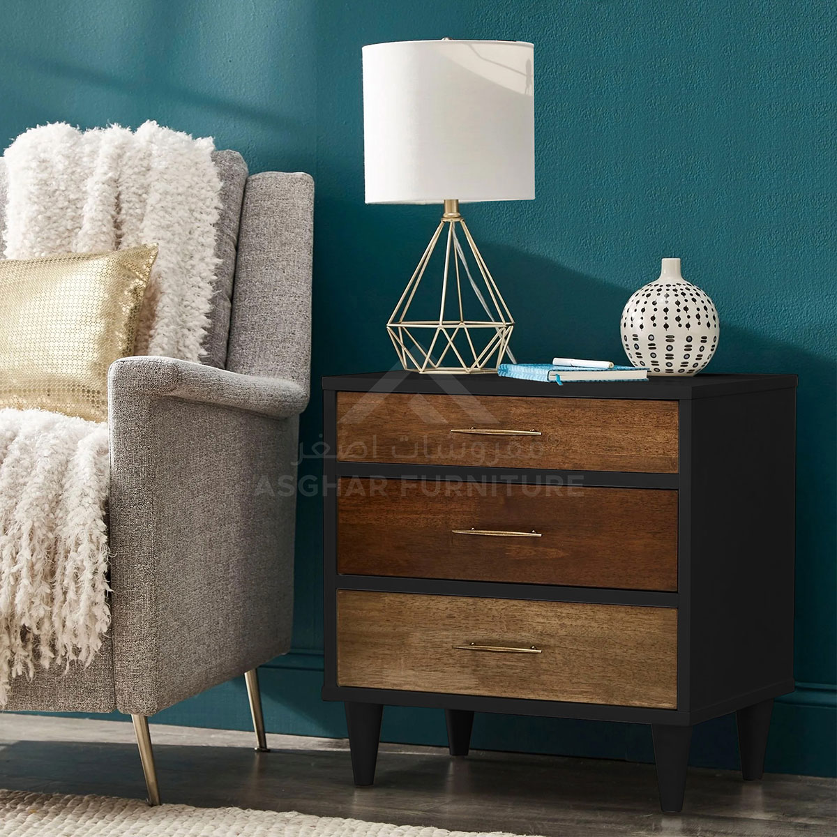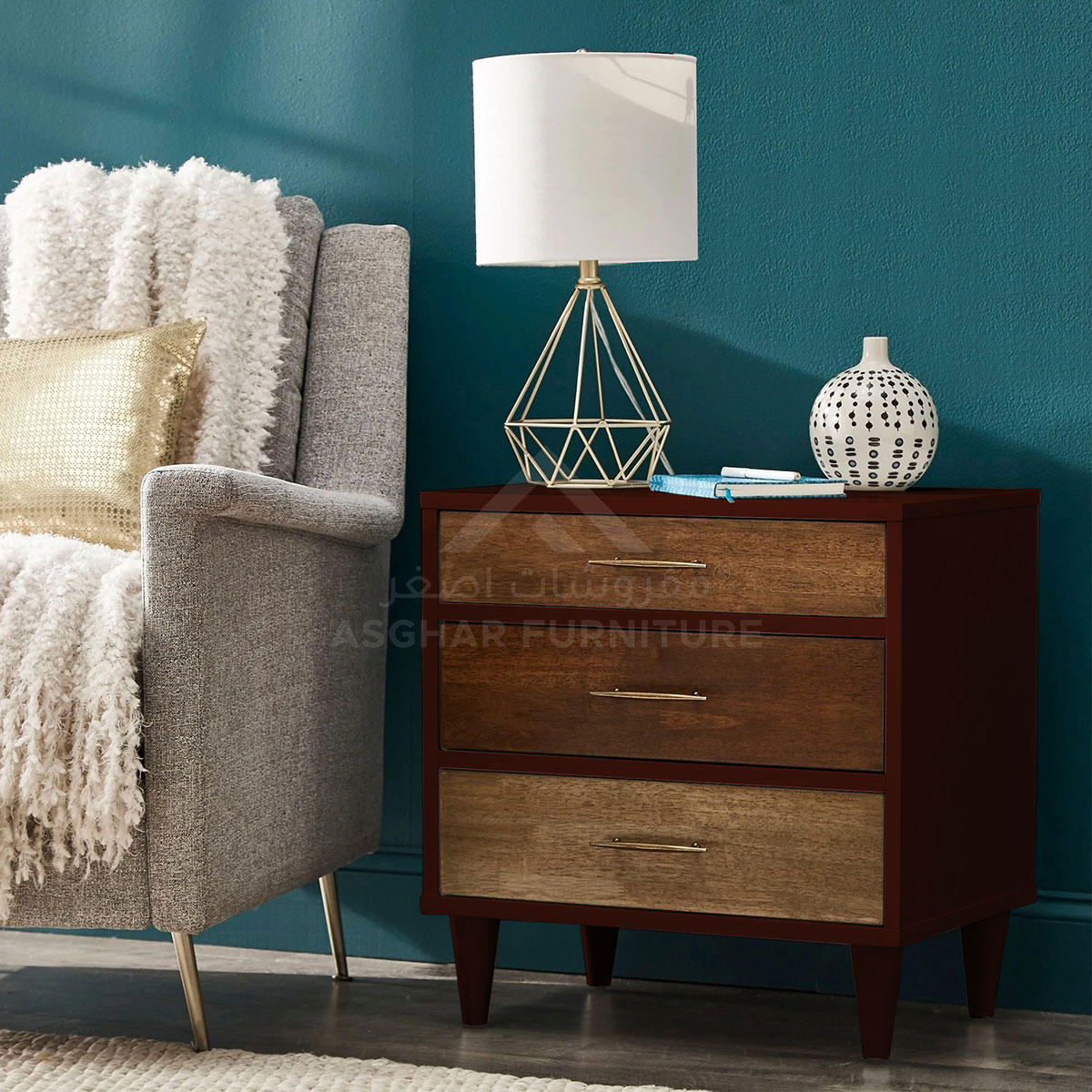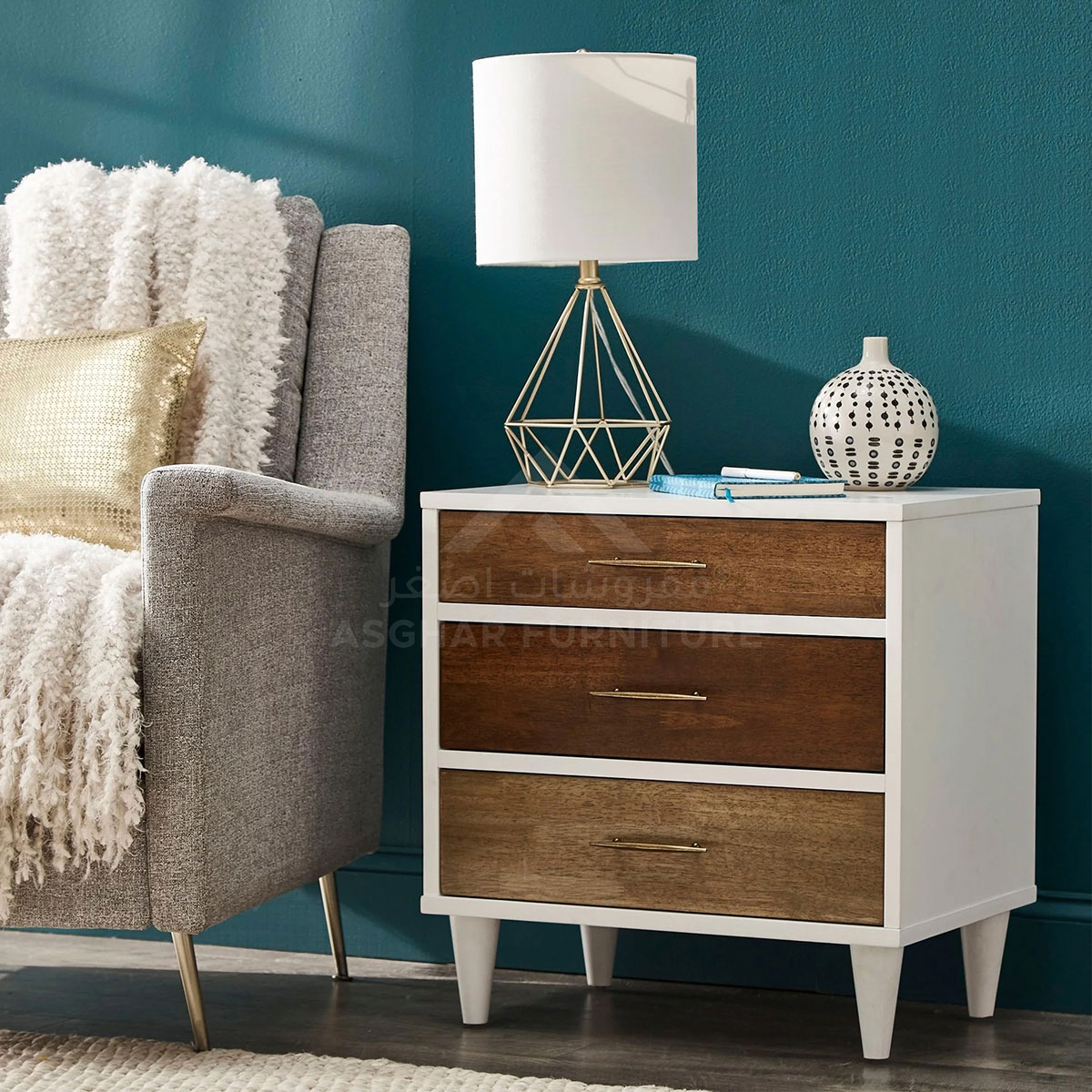 Nail the style mid-century modern look with the Cassie 3-Drawer Nightstand. Featuring a color block design and antique metal pulls, this unique nightstand brings an artistic style to your decor.