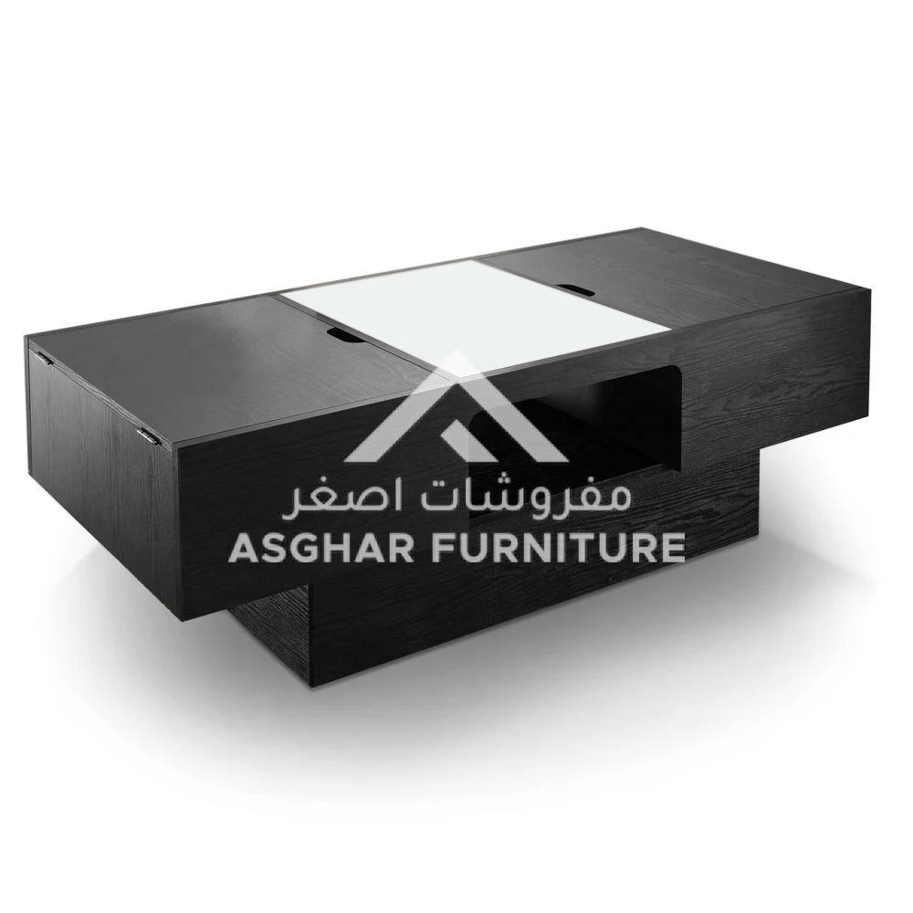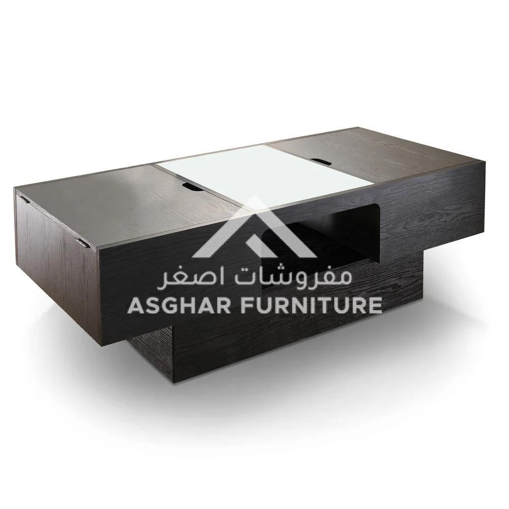 Paula Coffee Table, This contemporary coffee table by Asghar Furniture is constructed using wood with a glass top for an interesting and functional piece that offers two storage compartments and one open shelf under the glass for concealed storage. An extra shelf below the glass top adds another space to show off treasured decorative items.