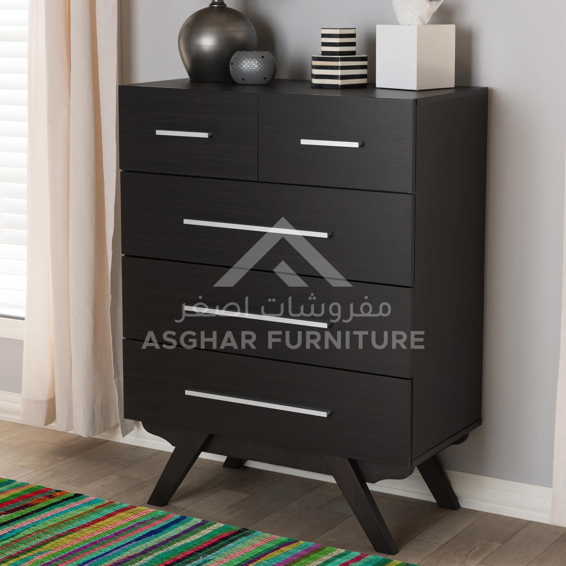 Walnut Brown Mid-century 5-drawer Chest, Add mid-century style to your bedroom with this Walnut Brown mid-century chest of drawers. Five drawers, with unique well finished handles, provide ample storage space for clothing and your other storage.