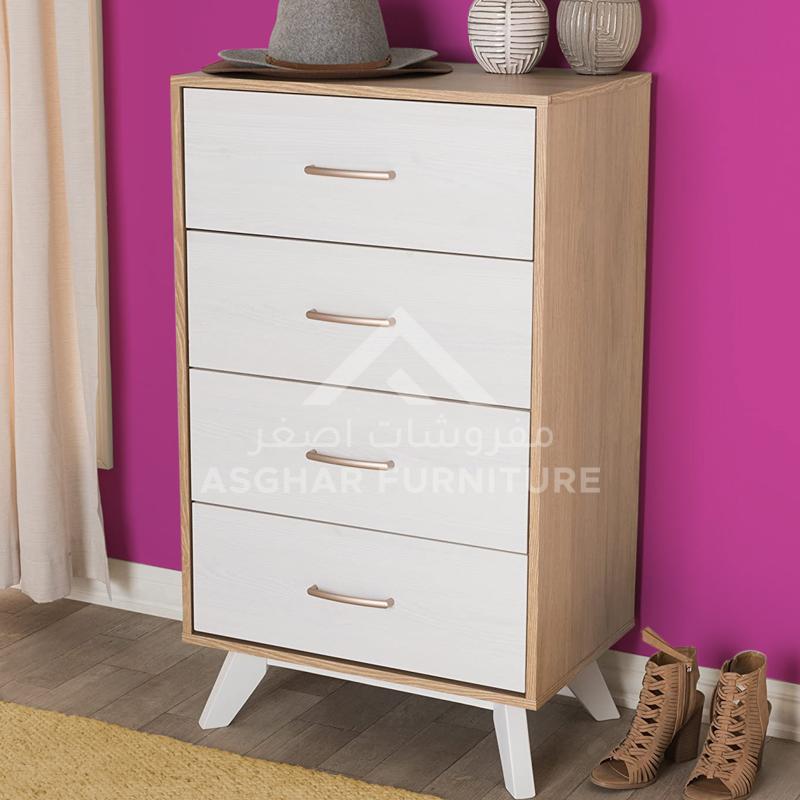 At Asghar Furniture, Add a hint of mid-century modern style to your bedroom with this Zoe 4-Drawer Chest. The natural oak and whitewash color scheme deliver a bright look, while the spacious drawers make it easy to organize clothing and accessories.
