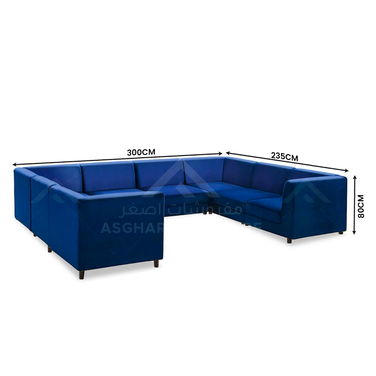 Bring elegance to your living room with the Oasis U Shape Sectional Sofa. Beautifully designed by Asghar Furniture to bring value to your living room. It’s durable built using the finest MDF woods specifically chosen to portray our quality standards makes the Oasis U Shape Sectional Sofa a power tool. Available in several types of fabric colors & materials.